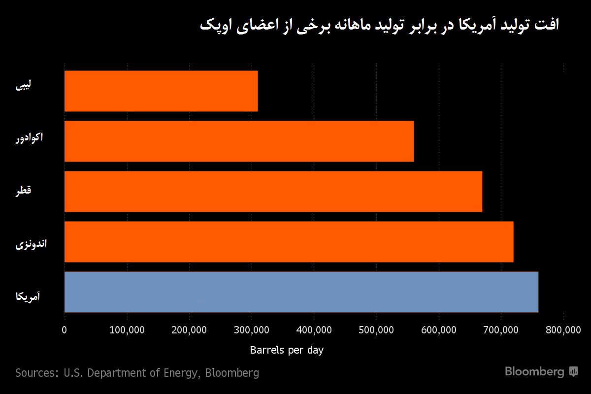 کاهش تولید نفت آمریکا در ماه آوریل 2016 به حدی بوده که از کل تولید ماهانه برخی اعضای اوپک پیشی گرفته است.